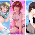 6 10 #夏が終わりそうだし今年描いた水着絵を貼ろう にちか、美琴、ルカ、3人ともかけてよかった〜!冬にも水着は描くけどね 22/09/23 22:38