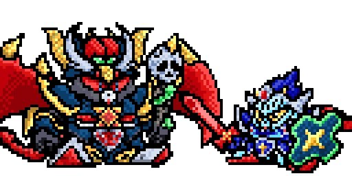 11 45 騎士ガンダム「正義の力で!みんなを幸せにするのが真の勇者だー!」 騎士ガンダムは好きなセリフたくさんあります☺️✨ フルアーマー騎士ガンダムももっとセリフほしいなぁ✨ 並べると、モンスターブラックドラゴン…でかい🤔 #SDガンダム #ドット絵 21/07/15 05:56