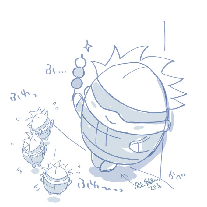 15 81 さっきの団子絵。🍡 「なんか刺さってるのかわいそうに思えてきてしまったから、みんなで串持ってる感じにしてみて…w こう…一人だけ手すりにもたれてイケメンポーズしててほしい(´σωσ)(唐突なリクエスト)」と言われてしまったので描いてみましたがこれで大丈夫ですか?w(皆で持ってないけど;) 22/06/04 12:48
