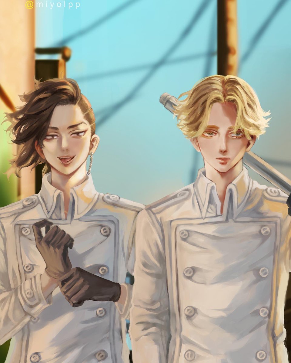 These two on their way to Church. (Of course to pray, they are good bois. 😌) I decided to give this piece sunset setting, because the original WIP was plain orange background. Now it looks like a scene before the Christmas showdown. #東卍FA