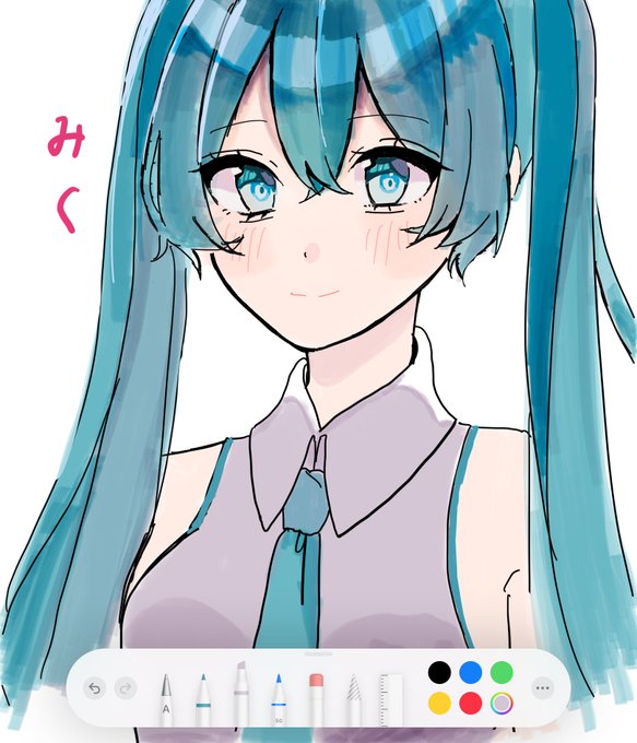 0 4 ためしにメモでミクちゃん描いてみた… Apple Pencilくん良すぎて感動してる🥲 22/06/18 16:46