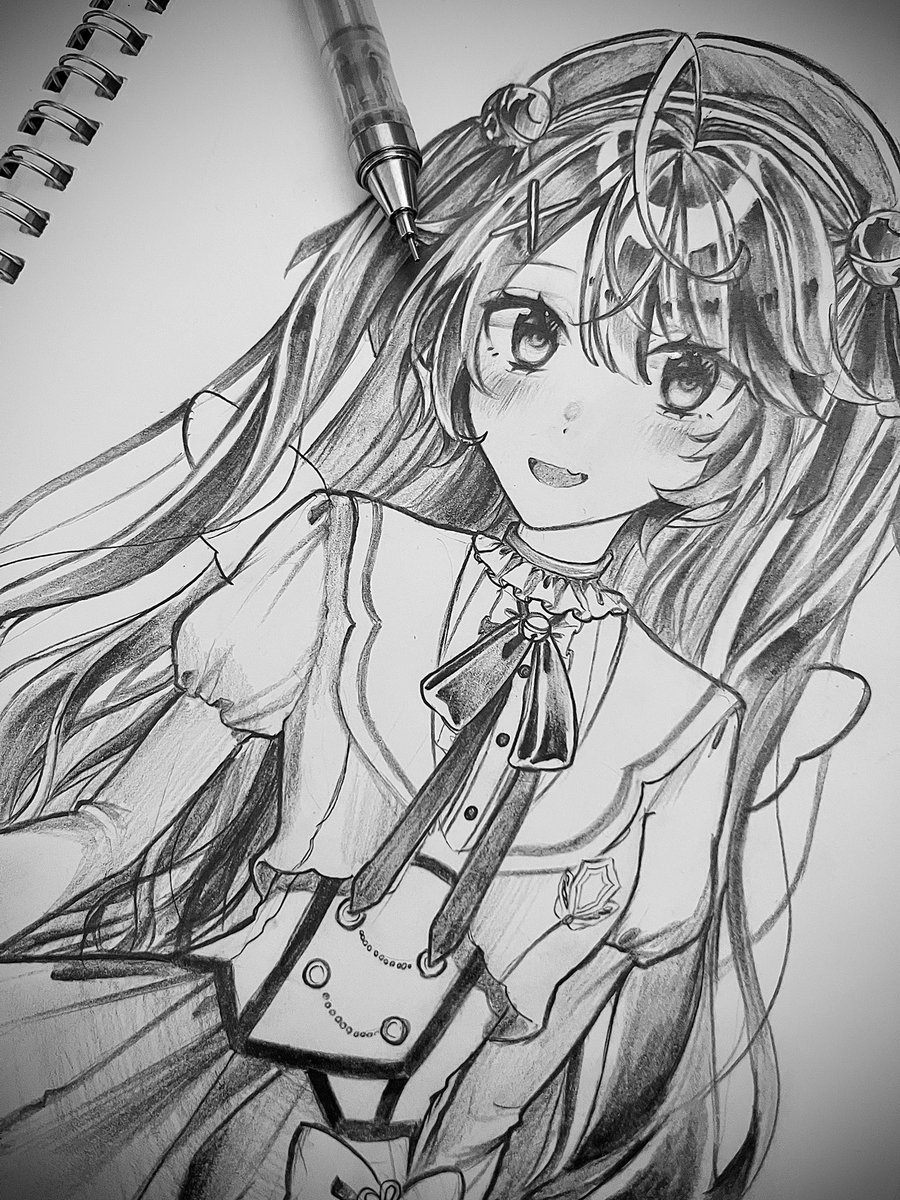 途中だけどめっちゃ顔可愛いな…🥹 (自画自賛) #絵描きさんと繋がりたい