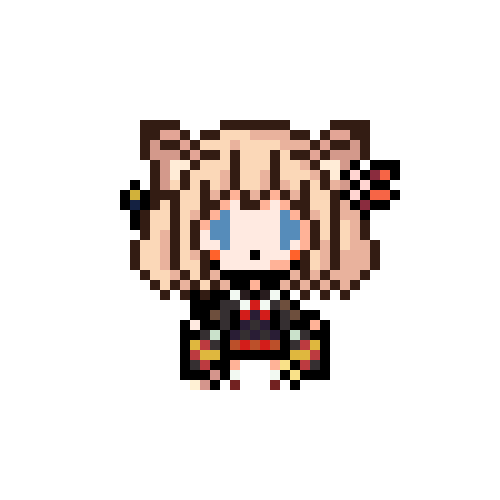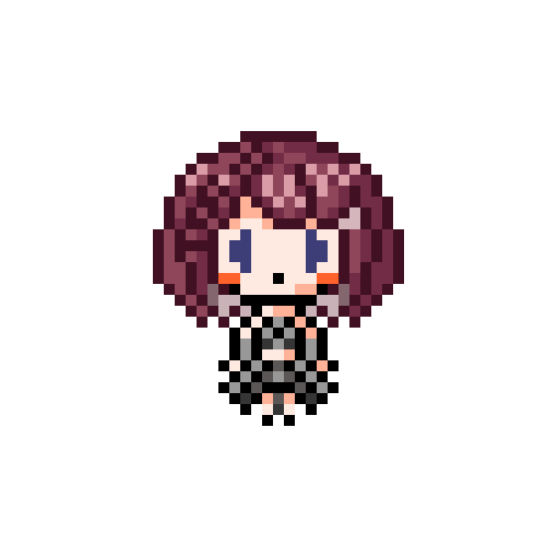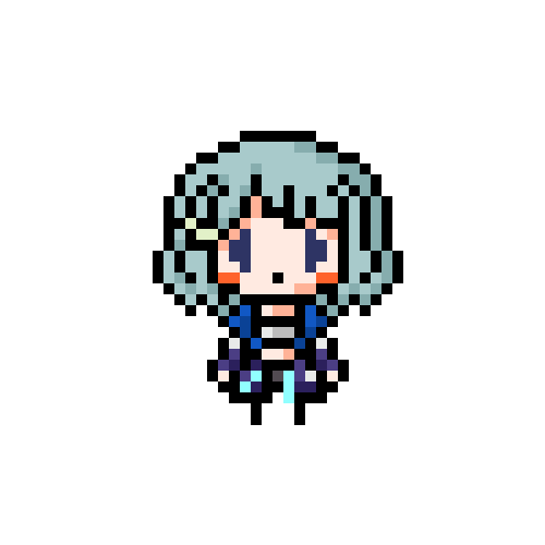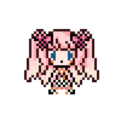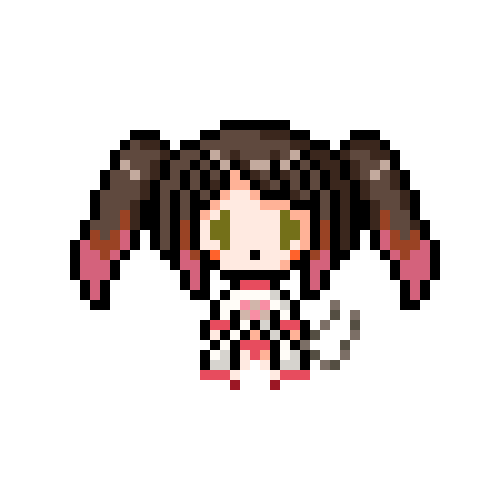 リクエストいただきました方のドット絵じゃ。 花咲千夢(@ItsumoOsobani)殿ですじゃ。 この方も元デザインがドット絵向き!ご自身をよおおく表されている特徴的な髪型、そして下に広がっていく衣装… この要素たちが良い感じにまとめやすかったのじゃ!どう?どう? #ドット絵 #ちむだまりのらいらっく