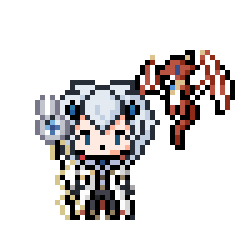 リクエストいただきました方のドット絵じゃ。 れあん(@White_Rean)殿ですじゃ。 参考データとして衣装をいっぱいもらえたのでいっぱい作りました。 別衣装がある方は見せてほしい。だいたい作るからワシ。そういう習性の生き物。 #ドット絵 #れあんふぁんくらぶ