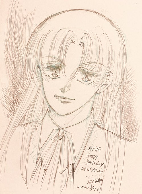 8 40 アンジー誕生日会遅くなりましたがアナログもいいとこな鉛筆画お祝いイラスト描けました〜愛想もひねりも構図の面白味も皆無な肖像画風味で失礼します〜 今はこれが精一杯😓 アンジーお誕生日おめでとう🎉祝う気持ちは目一杯。 今年もグレアムをヨロシク😵💫ご面倒かけます多分ねー💦 #愛しのアンジー 22/03/23 23:06