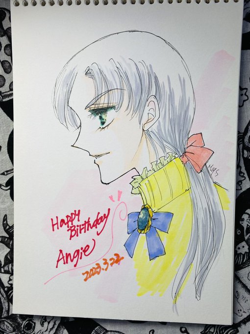 アンジーお誕生日おめでとうございます。今も変わらず飄々と踊るように過ごしているといいな。 幸せでありますように。 おめでとう㊗️ 日付間違えちゃったごめんなさい。年号につられた。 百均マーカーには全く慣れません😅落書きテイストでも今年は当日に描けたので満足です。 #愛しのアンジー