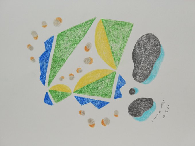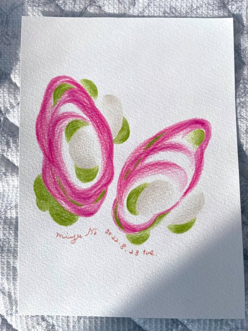 "Ear Wings "2022.08.23 colored pencil on paper 12×15cm #artworks #miyuteruya #abstractart #色鉛筆 #抽象画