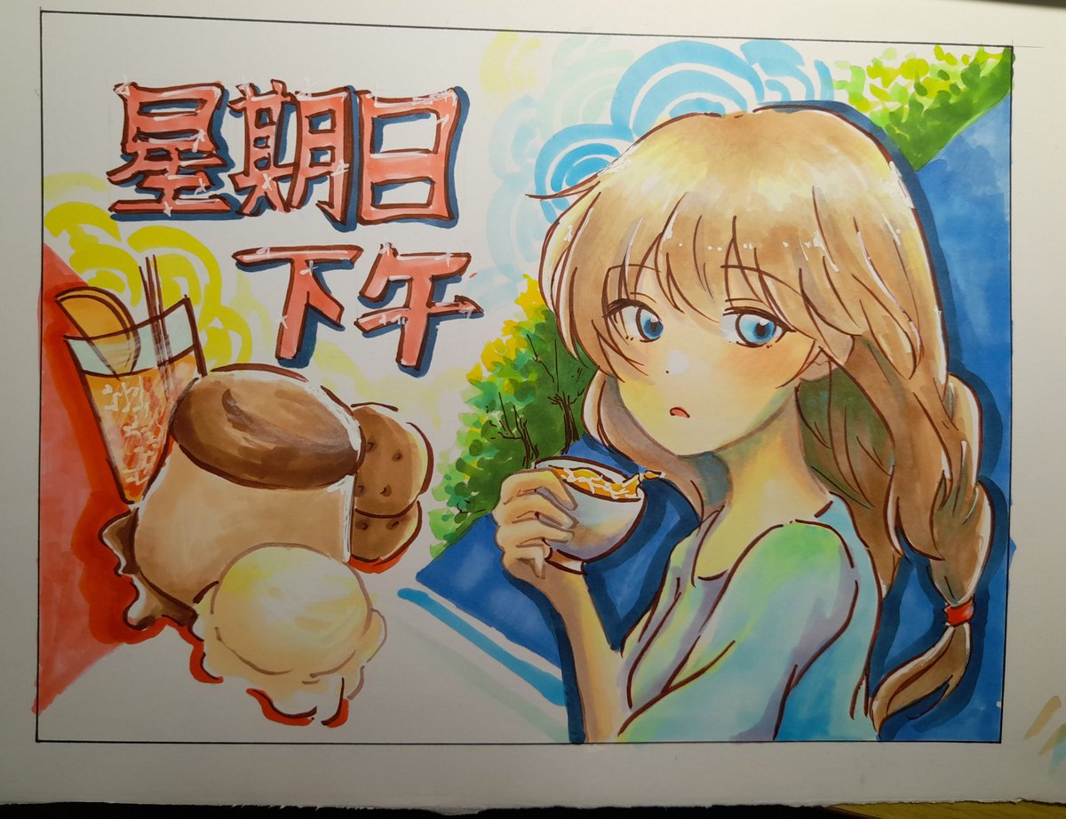 作業……TT #イラスト #イラスト練習中 #marker #copic