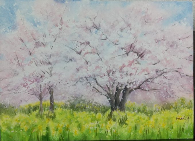 先日、ゆかり先生の講座で桜と菜の花を描きました。 しかし先生から枝の形が違う、幹の形が違う、幹の色も違うと言われた作品です🤣 はい!次から気をつけますw #水彩画 #watercolor