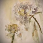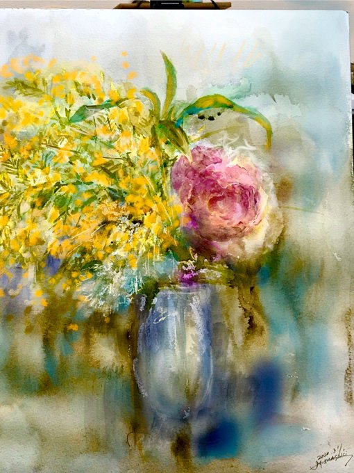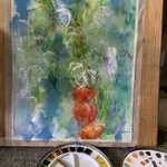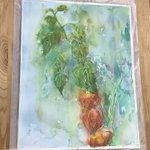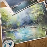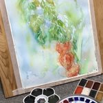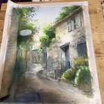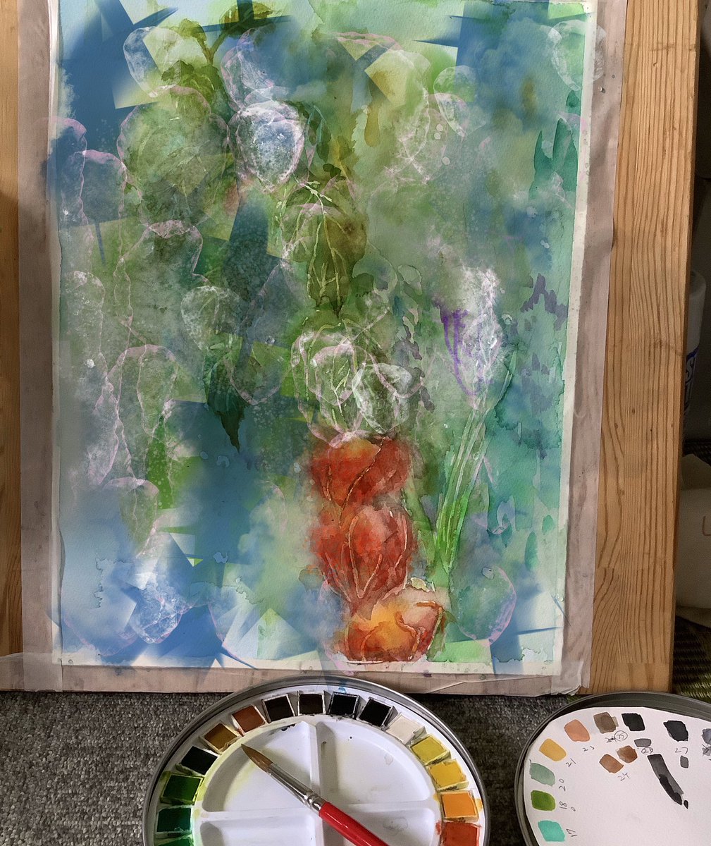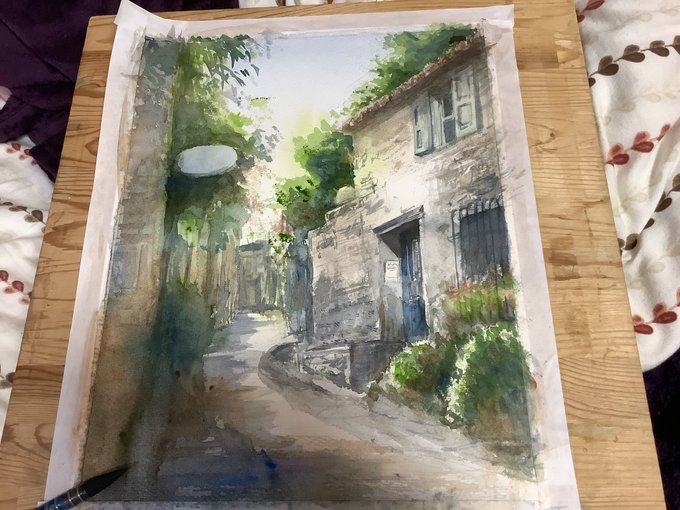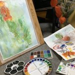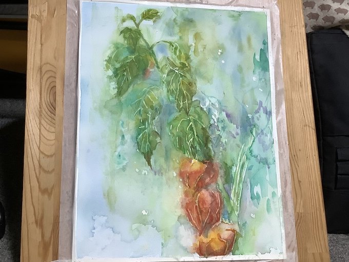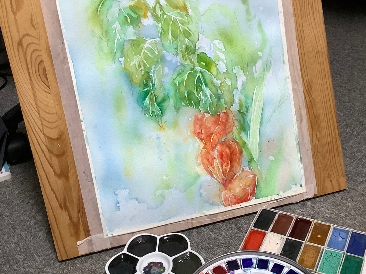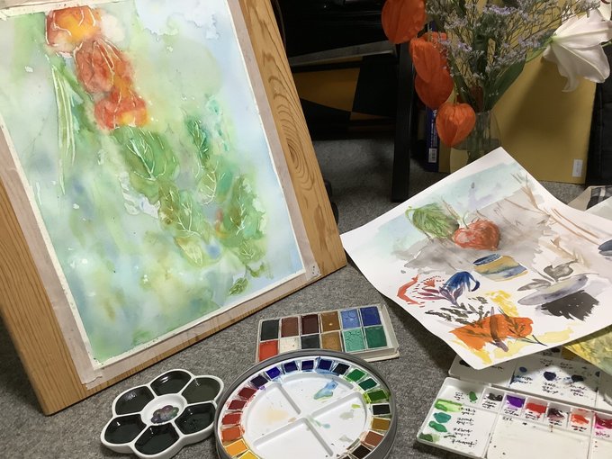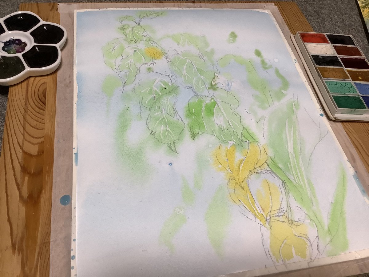 休日の午前中を使って部屋を片付けたのにまた散らかるお絵描きあるある #水彩画 久々に水貼りからしてみたよー 画材 紙→ #ウォーターフォード #蜻蛉顔彩 #ホルベイン透明水彩 #ぺデロ これから #絵墨 使うか迷い中…