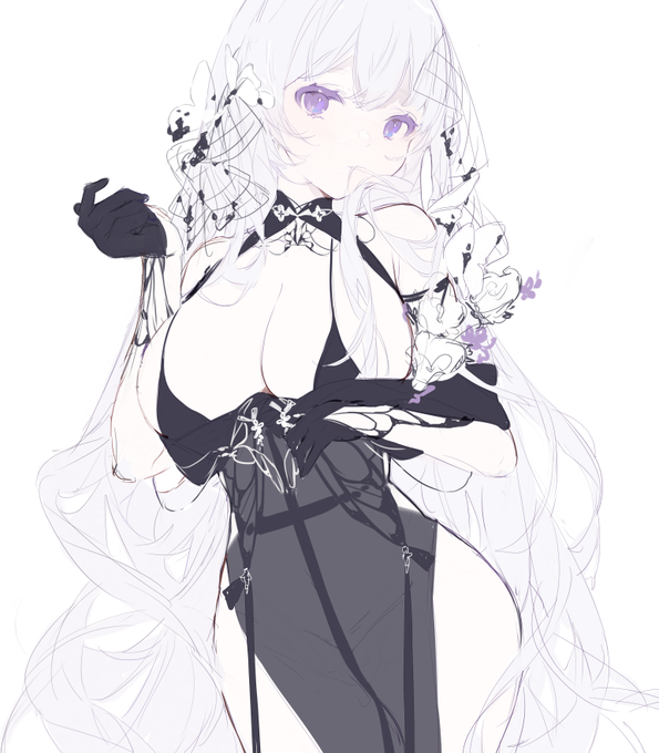 いつも描いていたあの子の元の姿 設定は白い藤の花のような巫女のオリジナルキャラクターです❀