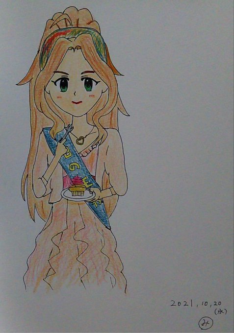 #今月描いた絵を晒そう お誕生日絵です。 エミリー誕絵の正座のつたなさ、 志保誕絵の動物たちの気持ち悪さ、 貴音誕絵のらーめんの圧倒的美味しくなさそうさ(モヤシのつもりで描いた線がむしろ気持ち悪い) が特に大きな反省点。 来月はまつりのお誕生日がありますので今からドッキドキです。