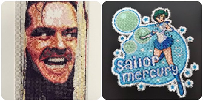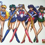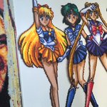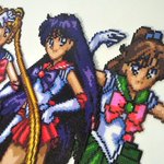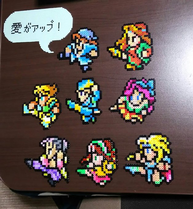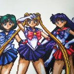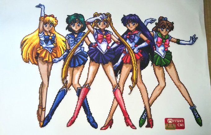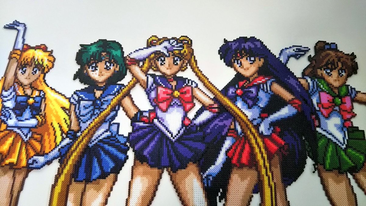 #アイロンビーズ で作った SFCソフト #美少女戦士セーラームーン 選択キャラクターが全員揃ったので並べて記念撮影しました! 💛💧🌙🔥🌳 #ミニフューズビーズ SailorMoon Beads