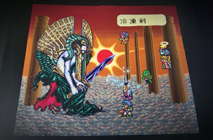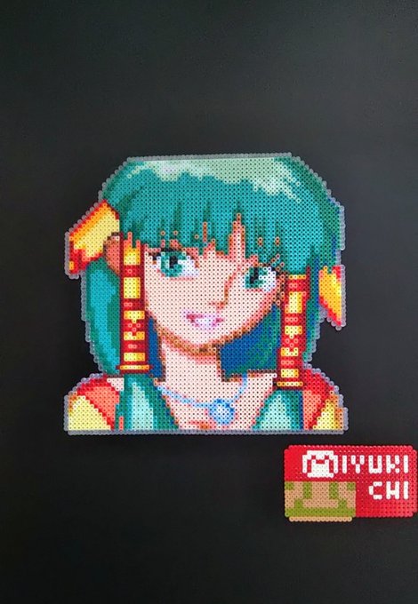 #アイロンビーズ で FC版 #イース のタイトル絵を作りました! 肌の色をフレッシュ(A22)で表現するのは私にとって冒険でしたが、原作と近い色合いになってくれたので大満足です✨✨ #ミニフューズビーズ Beads