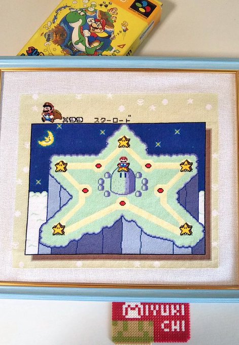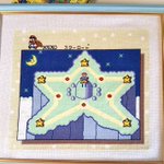 刺繍で #スーパーマリオワールド ネイティブスターを作りました!🪡✨ 28ct1本取り 23色 255×224 ネットも無かったのになぜかみんな隠しゴールを知っていた、そんなあの頃😌💭 #クロスステッチ #一画面再現協会