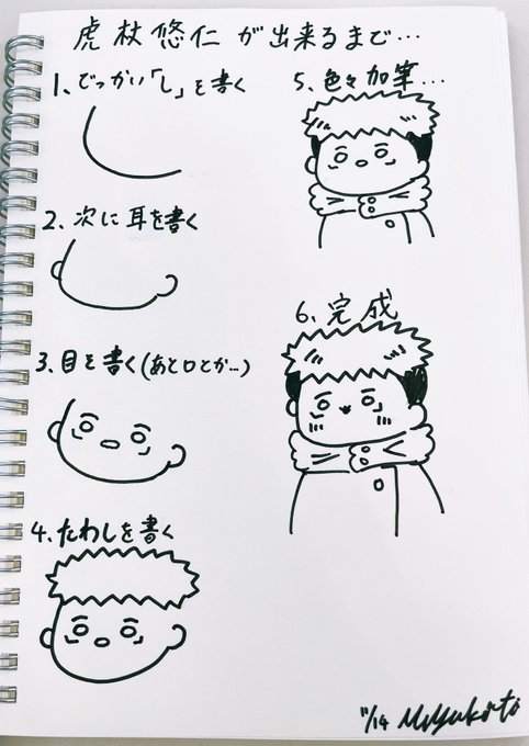 1 9 No.13 ハマってる描き方(虎杖悠仁ver.) 最近よくこの描き方でずっと描いてる。 勉強ノートにもよく出現する率が高い。 #呪術廻戦 #虎杖悠仁 #イラスト #お絵かき #落書き 22/11/14 11:49