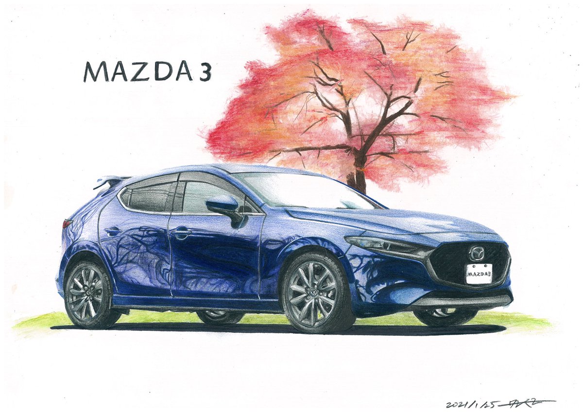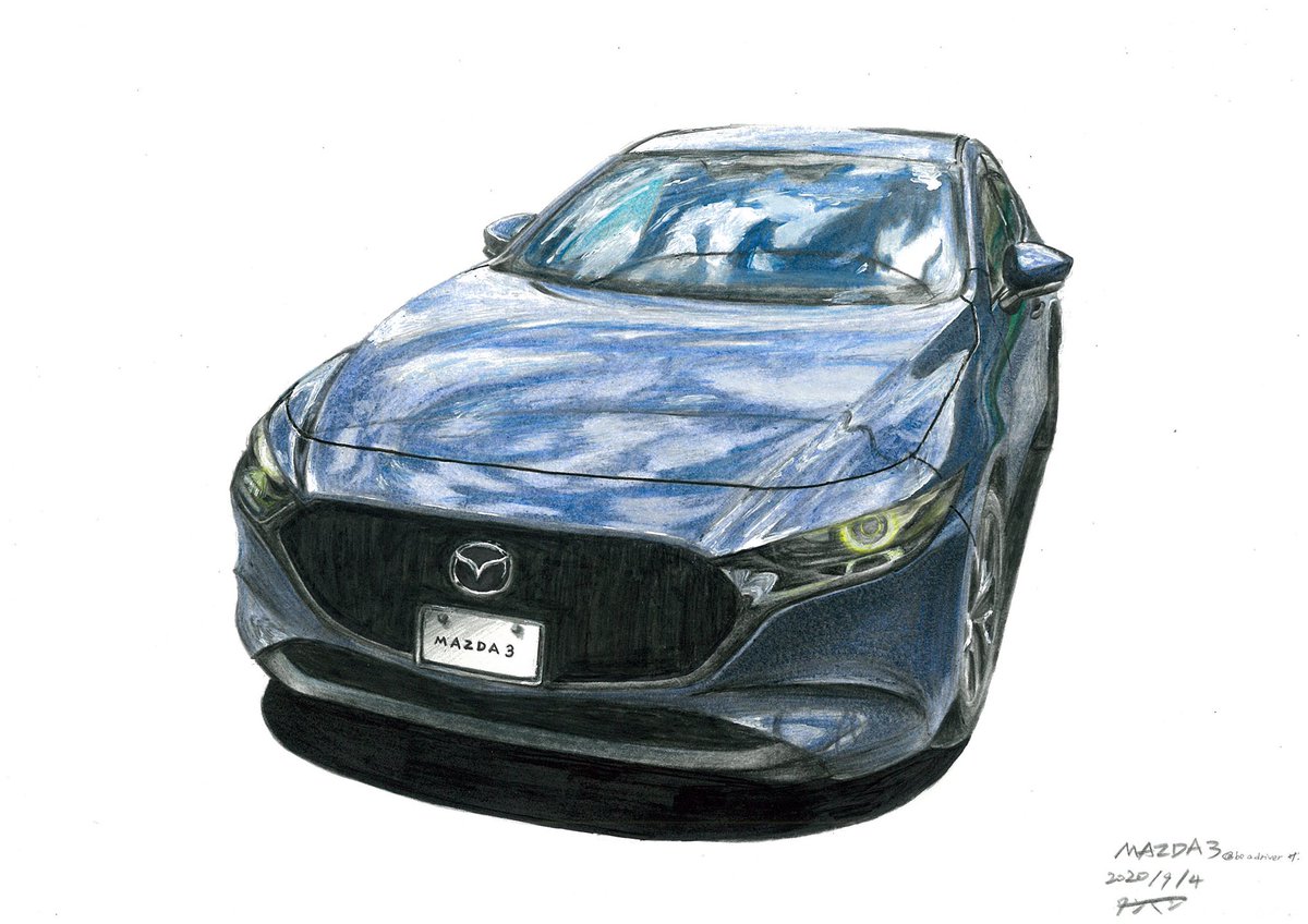 連日過去作ばかりですが... 今晩はMAZDA3を... #色鉛筆イラスト