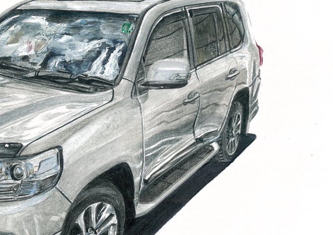 マイペースランクルさん@200LAND_CRUISER のランドクルーザーを色鉛筆で描きました! 前回よりカスタム度合いがアップしてて苦戦しましたがなんとかいいものが完成しました! #色鉛筆画 #色鉛筆イラスト