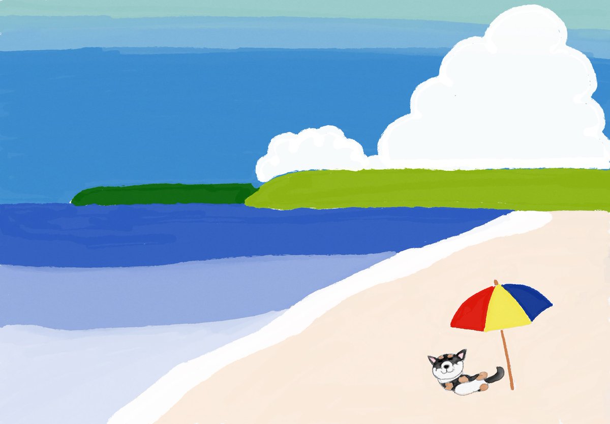 2 21 夏の地元の海とラルフ🏖🐶🎶 #夏 #夏空 #海 #柴犬 #黒柴 #イラスト #漫画 #絵描き 22/06/24 21:04