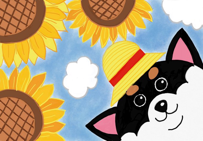 1 15 こんばんは🌇 いつもありがとうございます😊❤️ 向日葵とラルフと夏の空を描いてみました♬ #柴犬 #黒柴 #犬好き #向日葵 #麦わら帽子 #夏 #空 #イラスト #漫画 #絵描き 22/07/10 21:15