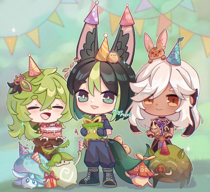 124 563 Happy birthday 🎉!! (*^▽^*) #Tighnari #ティナリ生誕祭2022 #原神 #Collei #Cyno 22/12/29 04:23