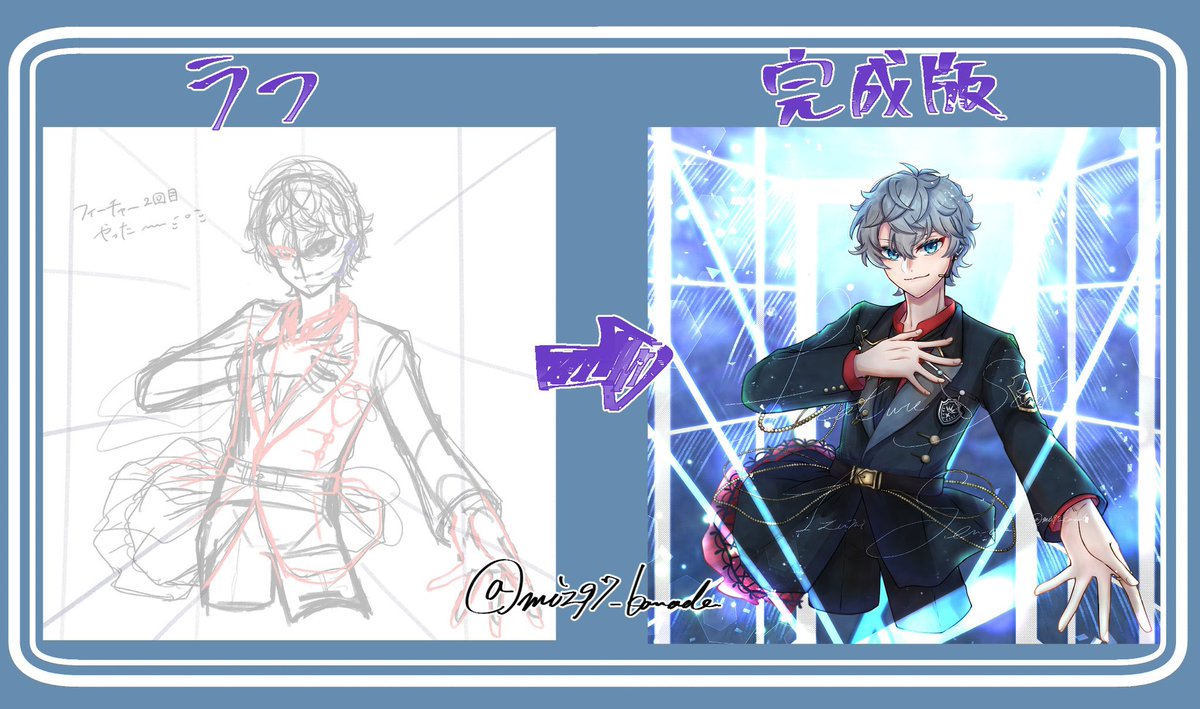 1 21 #このタグを見た人はラフ画とその完成絵を見せる 前画像作ってたの思い出したから再掲するね 22/09/27 19:25