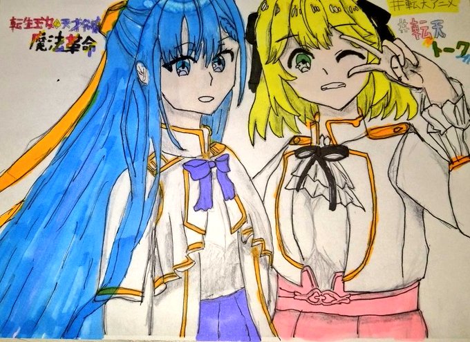 途中経過の①④⑤そして完成形の⑨ タイムラプスもあげましたが、早すぎてよくわからないと思うので、9枚中4枚の途中のやつと完成したやつあげます。最初よりかなり変わってるのがわかると思います! #イラスト #転天アニメ #転生王女と天才令嬢の魔法革命