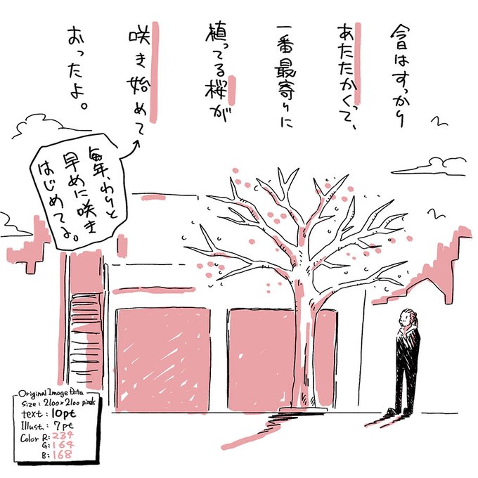 結構な数が開いてたので、2,3日前から咲いてたのかもしれない。市の公式の開花宣言ももう出てるのかな? #絵日記 #diary #illust #illustration #イラスト