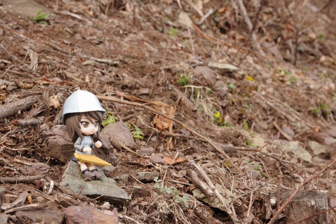 春の足音がきこえる #キューポッシュ #garupan ミカはどこにでも、います。 そこに、座りやすそうな石があったから。 ただ、それだけです。