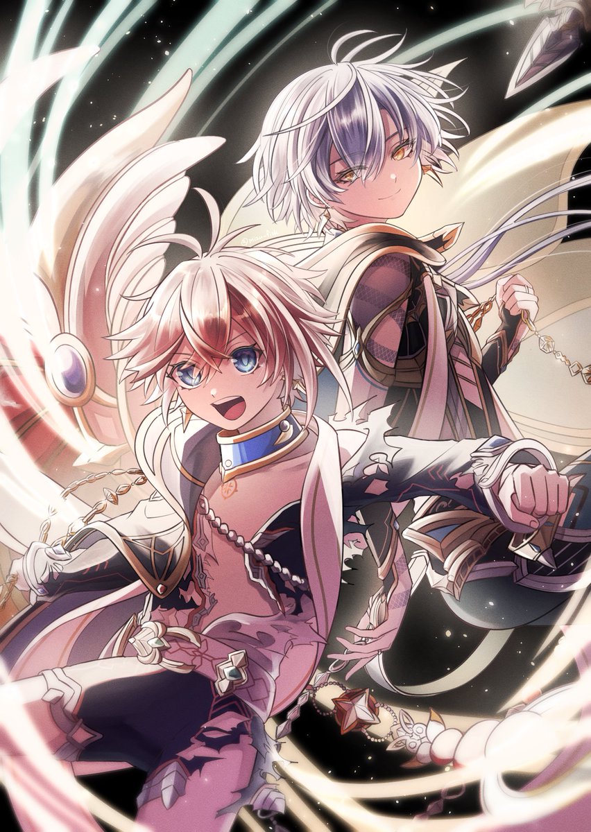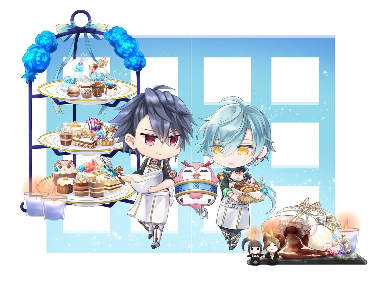 26 79 オルさん(@ oruserug )と合作でアクリルジオラマを作らせていただきました🍰💓 お菓子作りな2人&先輩と、以前合作した執行騎士団集合イラストです🌸 とっても綺麗で最高にかわいくて胸がいっぱいです…✨ 22/03/26 21:10