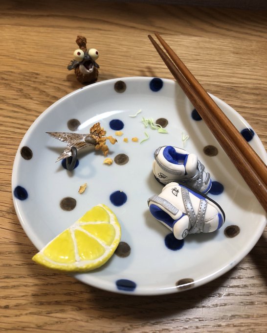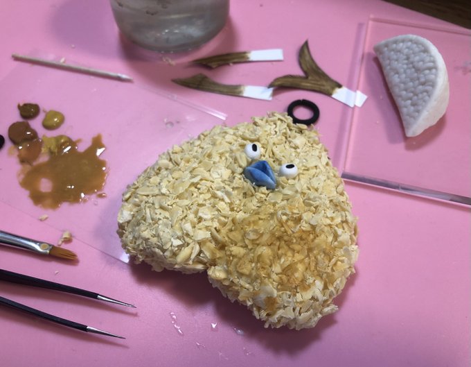 373 2065 アジオの途中🍤アジフライ部分は出来た🤤あとレモンと靴。(クツキーホルダーコレクションは公式で販売されているものです。) 23/02/12 15:27