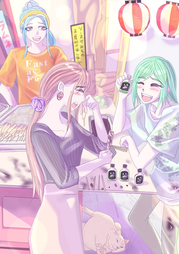 おちょぼ稲荷で串カツクライナー出来る世界線、まだ来ない? #絵描きさんと繋がりたい #イラスト好きな人と繋がりたい #いつか超つよつよ絵師になるので今のうちに推しませんか #絵柄が好みって人にフォローされたい #夏の創作クラスタフォロー祭り #クライナー
