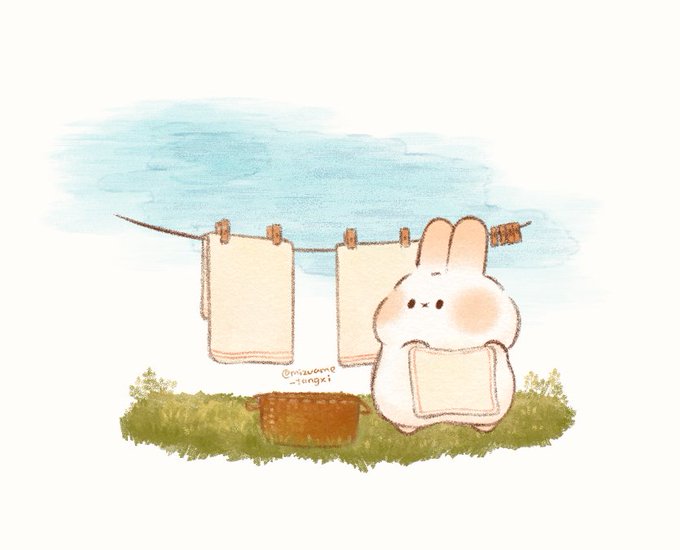 洗濯日和 (○・×・○)☀️ #ぷみうさぎ #すぴょんず #イラスト