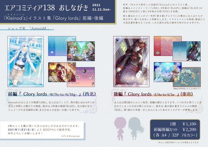 [通販のお知らせ] 2021年11月21日(金)開催のエアコミティアに合わせて通販します!物語付きの設定資料集みたいなイラスト本2冊です💎✨ 初めての試みですがどうぞよろしくお願いします🌟 BOOTH→ asterism-mztm.booth.pm #エアコミティア #エアコミティア_SFファンタジー #エアコミティア_通販