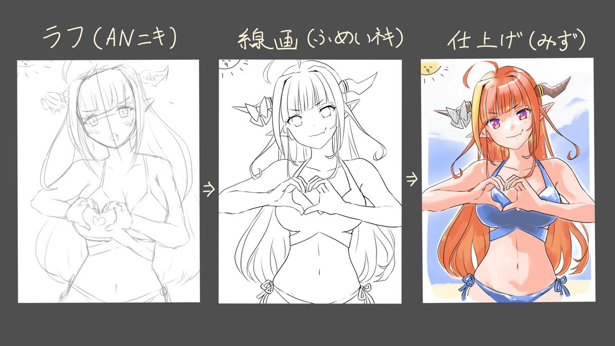 60 224 #みかじ絵 イラスト交換会をしました! ラフ ANニキ (@ruholi367) 線画 ふめいネキ(@humei404) 仕上げ みず 楽しかったです!ありがとうございました!✨ 23/06/26 22:02