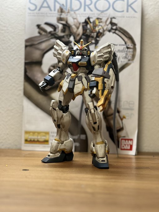 ガンダム サンドロックをウェザリング塗装にて組立て かっこよく仕上がったのでは?と思ってます #ガンプラ #ガンプラの画像貼るとRTされると聞いて #ガンプラはどんな自由な発想で作ってもいいんだ #gunpla #ウェザリング塗装 #ガンダムサンドロック