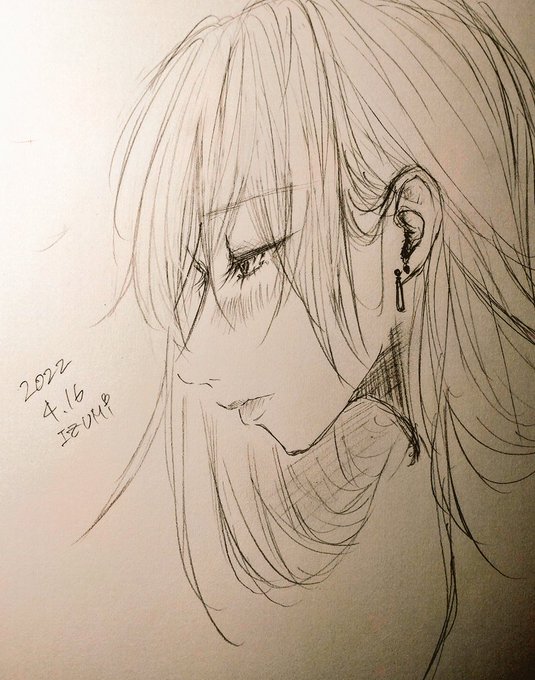 3 21 今日の落書き。 横顔 #適当女子 22/04/16 21:34