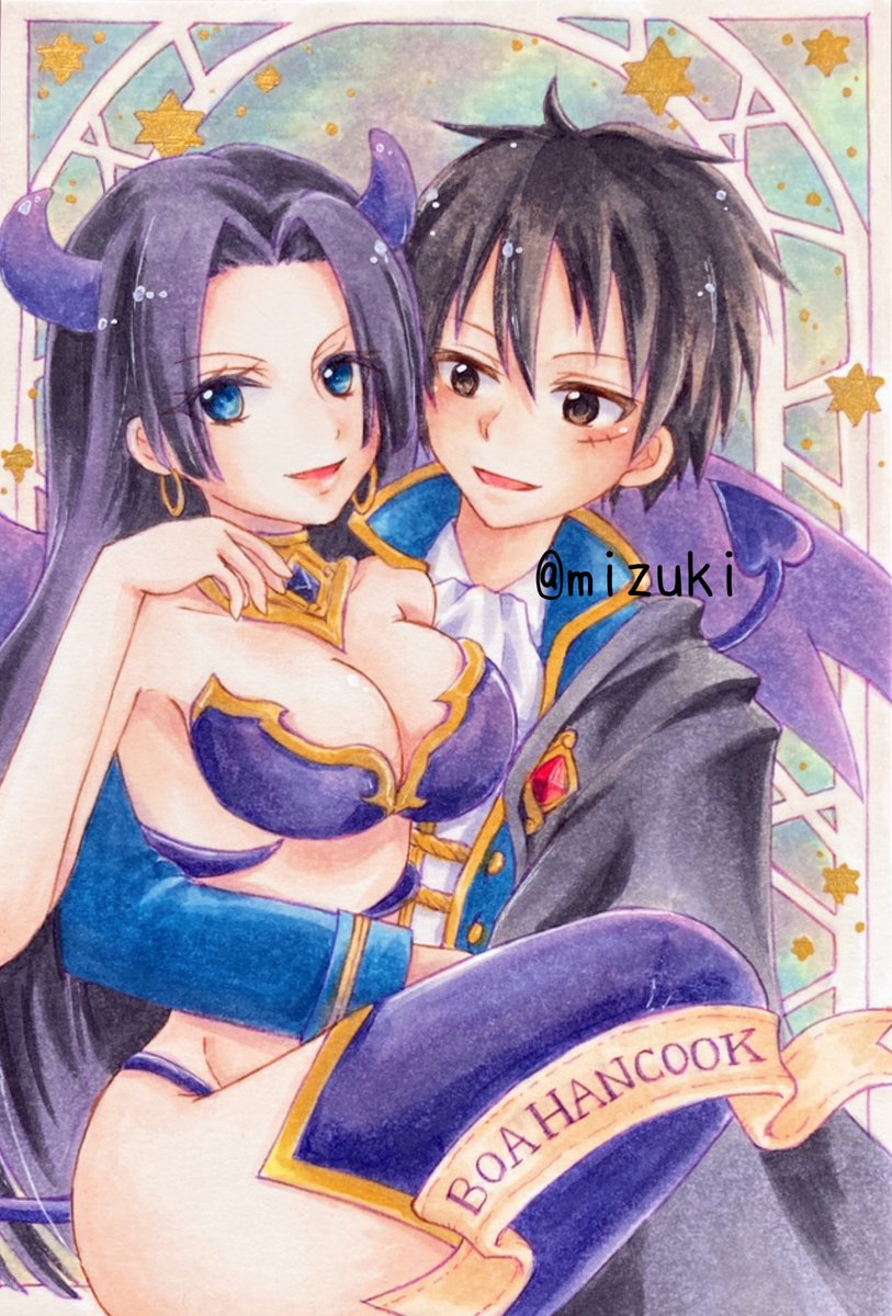 ワンピースのご依頼☺︎ サキュバスハンコックにメロメロなルフィという設定です♡ #絵描きさんと繋がりたい #アナログ絵を流してアナログ民を増やそう #アトリエの系譜R