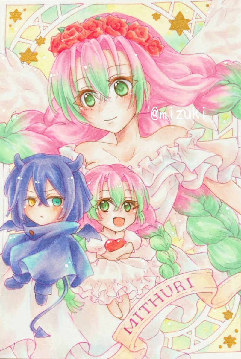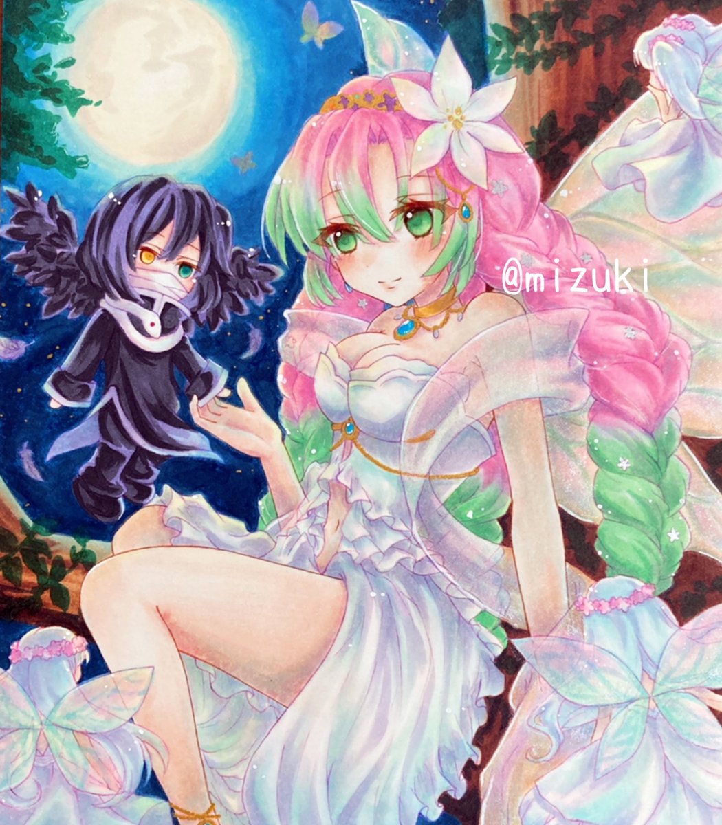 15 57 ミニ堕天使小芭内と妖精蜜璃ちゃん🌸 ご依頼絵です☺︎ 透明水彩絵の具で一部キラキラにしてます♡ #絵描きさんとつながりたい #イラスト好きな人と繋がりたい #アトリエの系譜 #アナログイラスト 22/01/13 17:39