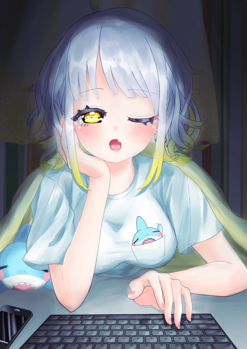 気が向いたら描くリクボに入ってた「深夜に電気を消した薄暗い部屋の中で眠たそうにしながらパソコンで作業している柚子花」を描きました~ リクエストしてくださった方ありがとうございました! (気分が乗ったので寝ちゃった差分付き) #yuzuhart