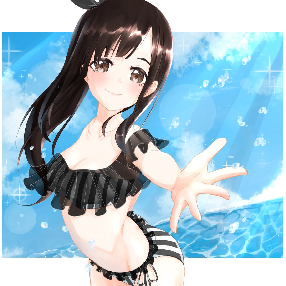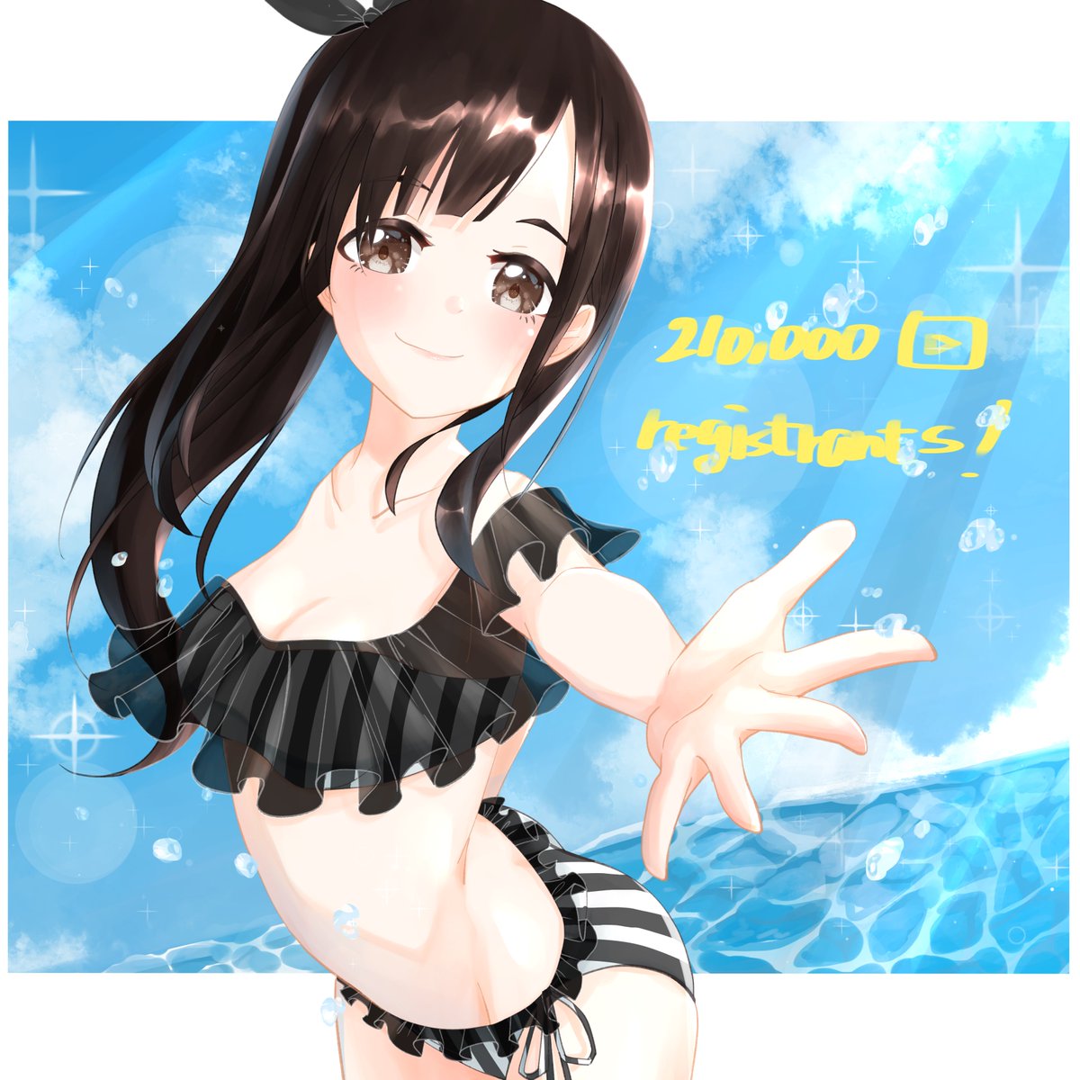 21万人おめでとう!(一万人遅れ) 一緒に海はいろっなキョウちゃん🌊 だいぶ前から書いてたんだけどよき日に出来上がりました #花鋏キョウ #はなばさ民 #はなばさみあーと #ビキニの日