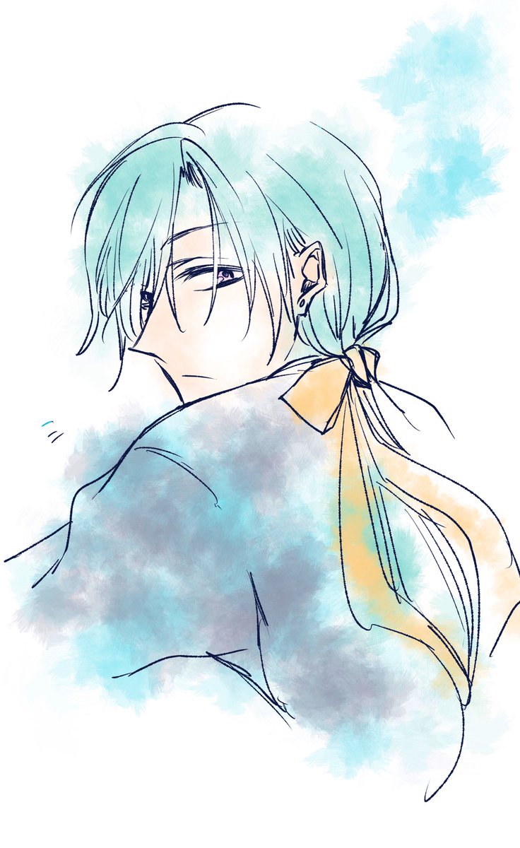 #twstファンアート 描くと来てくれると聞いたので…!! お布施出来ぬが君に来て欲しいのだジェイドぉぉお〜!!😂 (次回のピックアップで宜しく頼む🙏) というか、描いた後に気付いたのだが、この衣装の時はピアスしてないんだね…!(そして何だかフロイドっぽくなってしまった)
