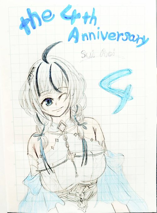 1 2 #青井水彩画 新衣装が可愛すぎて遅くなったけど 記念イラスト描かせて頂きました✨ 改めて4周年おめでとうございます🎉 23/02/10 23:19