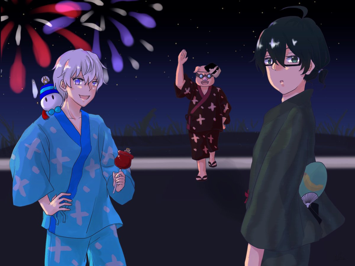 昨夜の配信、浴衣甚平スキン素敵すぎました 一緒にお祭り行きたい…… #ドズル社アート #はよ見ろやあ #見るかもわからん #誰でも見れますねぇ