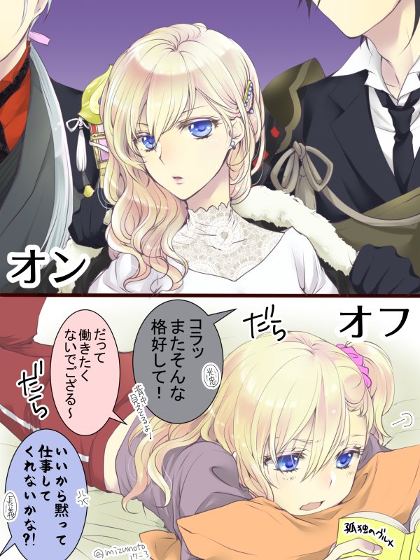 #審神者の日 #3月28日は審神者の日 2日ほど遅刻したけど年に一度の審神者の日!うちの創作審神者絵アップします 赤髪が鶴さにの神社の社家出身能力者審神者 金髪が長義さにの訳あり政府広告塔お嬢様審神者 2枚目は主たちの記念撮影に何故かドヤ顔になる相手男士ふたりのおまけです…笑