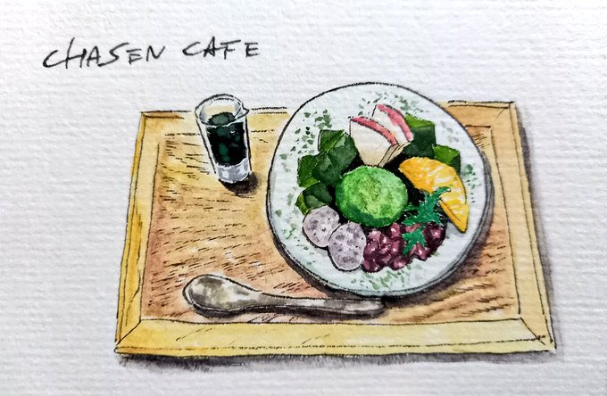 茶筅カフェのデザート #水彩