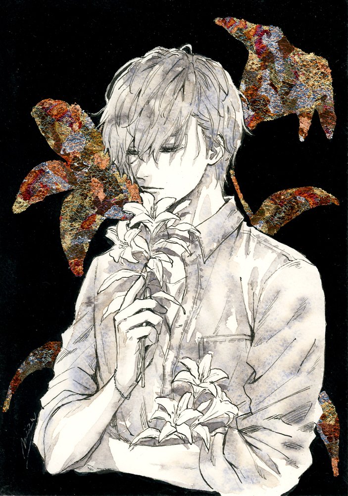 7 27 #ゴールデンウィークSNS展覧会2022 アナログやデジタルで創作イラストを描いています。 特に男性をよく描きます。 紙ものやハンドメイド絵の具を作るのも好きです😄🌸 22/05/01 14:04