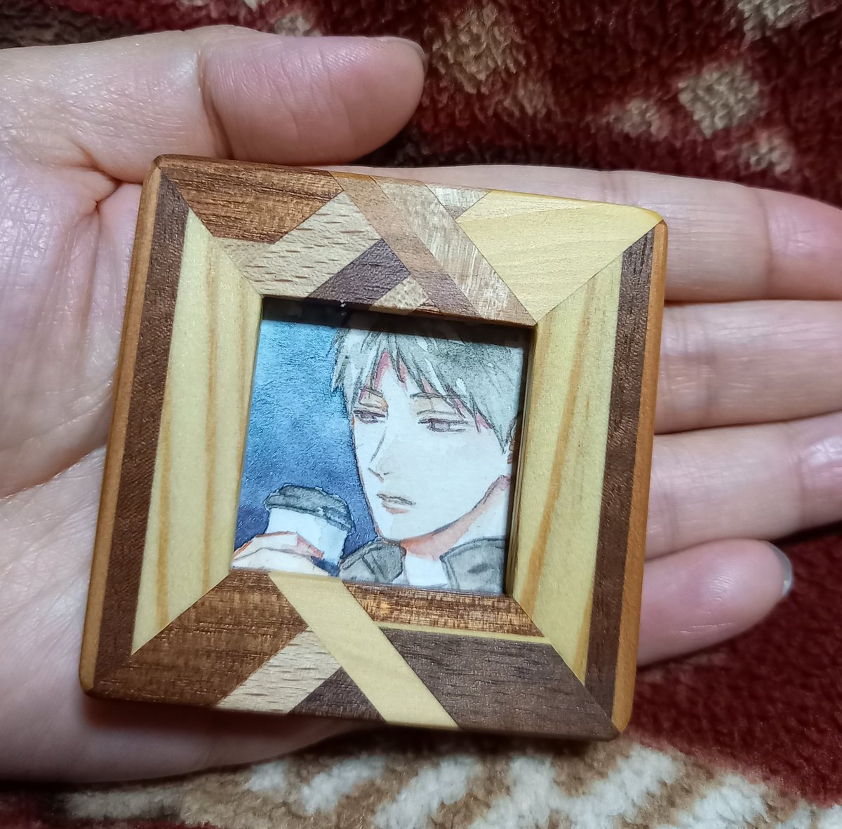 今日のミニミニマルマン。にフォロワーさんにいただいたミニ額に入れる絵を描きました 漫画で描いてる主人公くんです
