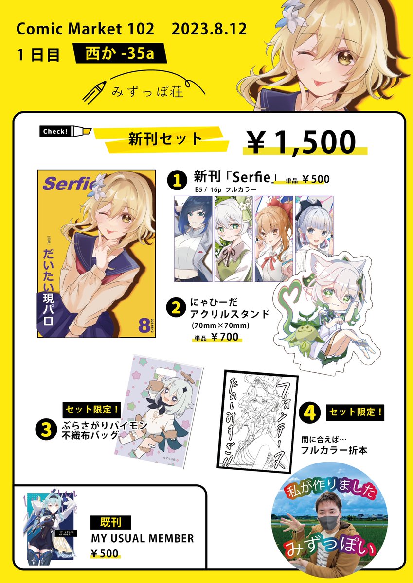 #C102お品書き 夏コミのお品書きです。 1日目 西か-35a「みずっぽ荘」にてお待ちしております。 よろしくお願いします👍