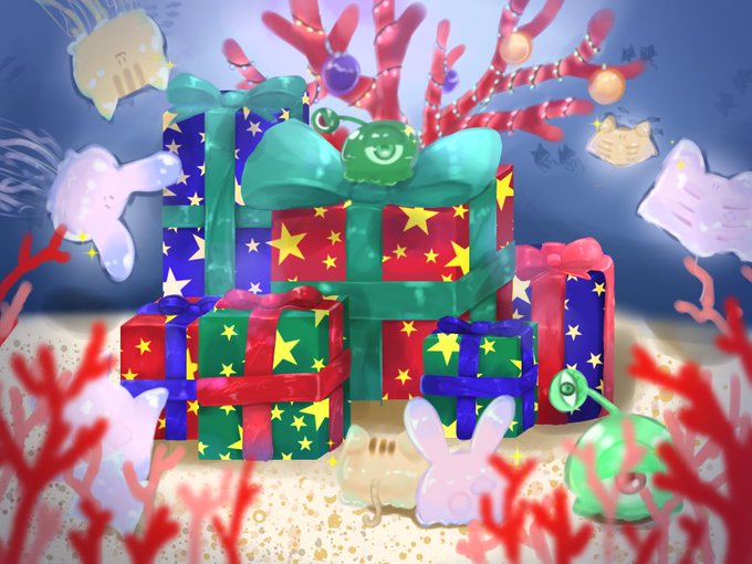 メリークリスマス❤︎ 滑り込みセーフ(;;) 海にもクリスマスあるのかな🤍🎀𓈒𓏸 水生生物×陸生生物のキメラちゃん達です #絵柄が好みって人にフォローされたい #イラスト #冬の創作クラスタフォロー祭り #絵描きさんと繫がりたい 絵描きさんフォロバ100です